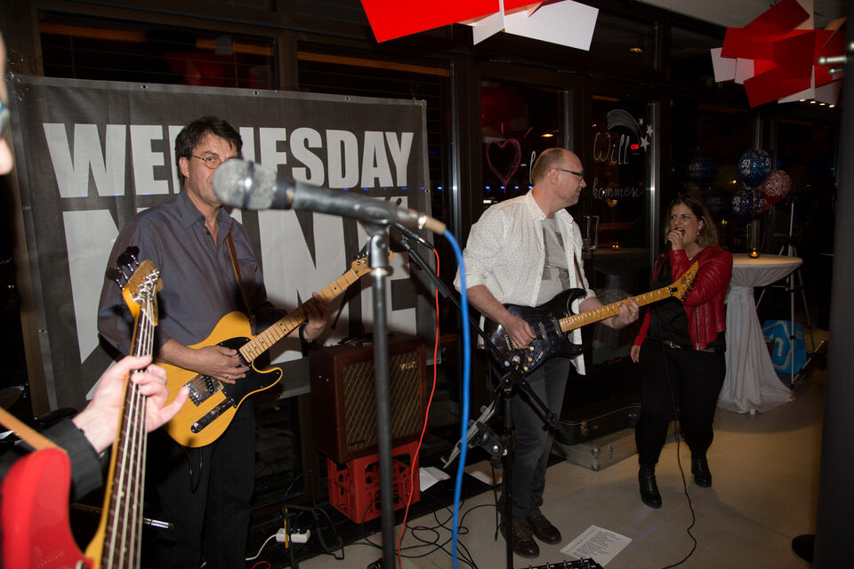 Anlässlich einer Geburtstagsfeier wurden wir am 13.4.17 von unserer guten Freundin Anja eingeladen auf ihrer Party ein paar Songs zum Besten zu geben. Das Quai in der Überseestadt war uns bis dahin unbekannt. Die Location ist perfekt für Feiern geeignet und das Essen war hervorragend. Die Stimmung war schon sehr gut, als wir gegen 22:00h anfingen und trotz der sehr heterogenen Zusammensetzung der Gäste (zu dem Zeitpunkt war von 11 bis 80 Jahre noch alles vertreten) waren alle Zuhörer begeistert. Das führte dazu, dass wir kurzer Hand auf eine Pause verzichteten und ca. 1 1/4 Stunde durchspielten. Die Tanzfläche war von Anfang bis Ende gut gefüllt.